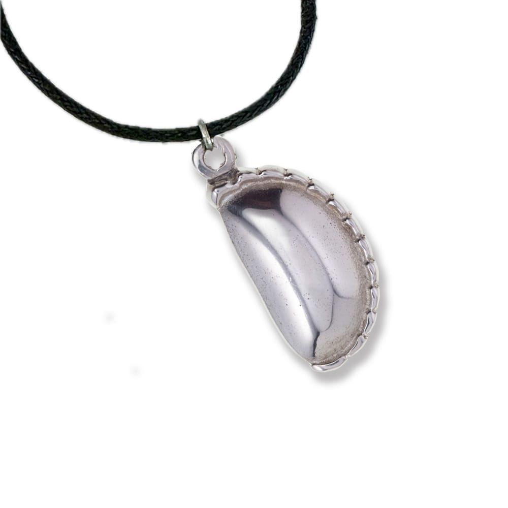 Cornish Tin Pasty Pendant – the iconic Cornish pasty made from Cornish tin and hanging on an adjustable cotton cord.